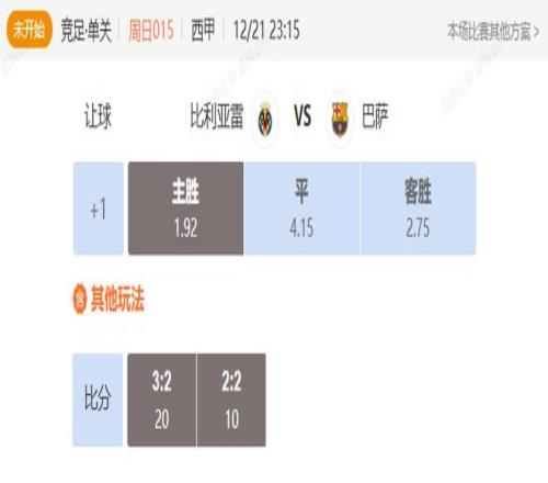 竞足 周日015西甲比利亚雷VS巴塞罗那