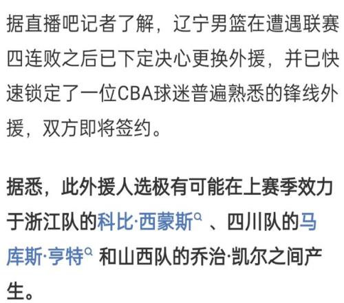 根据媒体报道,辽宁男篮新外援是一位CBA球迷普遍熟悉的锋线球员,那么大概率会是亨特,传闻辽宁男篮之前就和亨特接触过,但是合同分歧比较大。