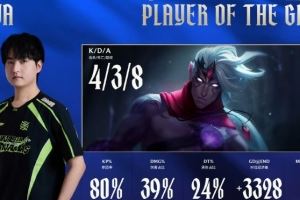 电竞体育1月28报道 有点东西!HOYA上单维鲁斯全场伤害最高34.5K拿下第一局MVP。